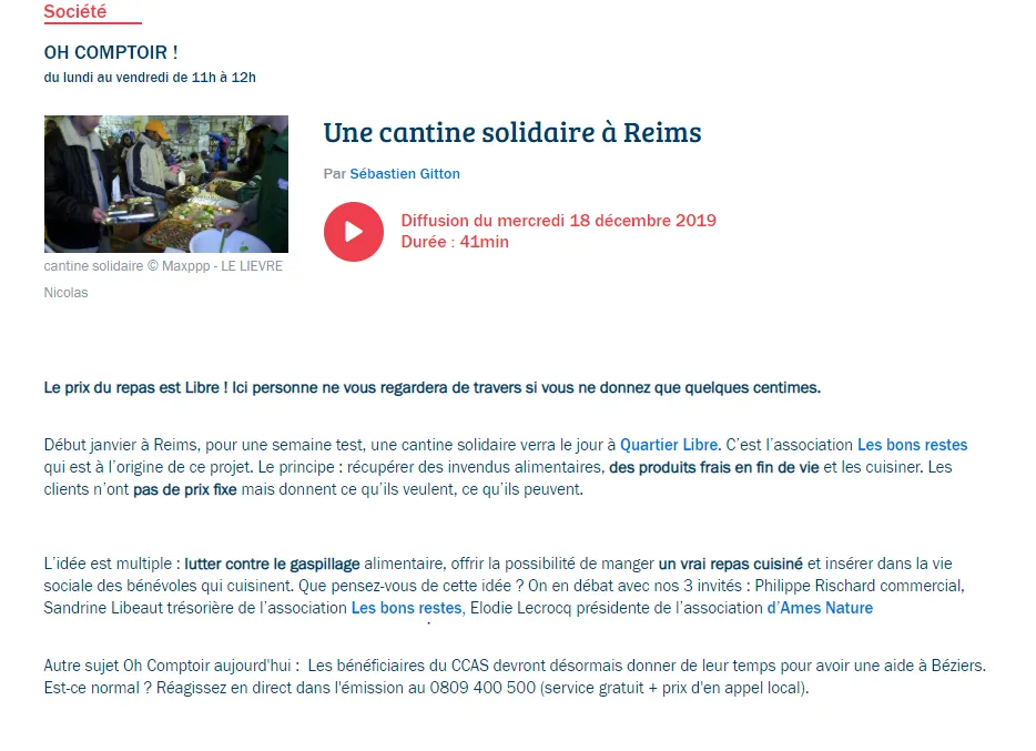 L’événement ICI Champagne-Ardenne : La cantine des Bons Restes