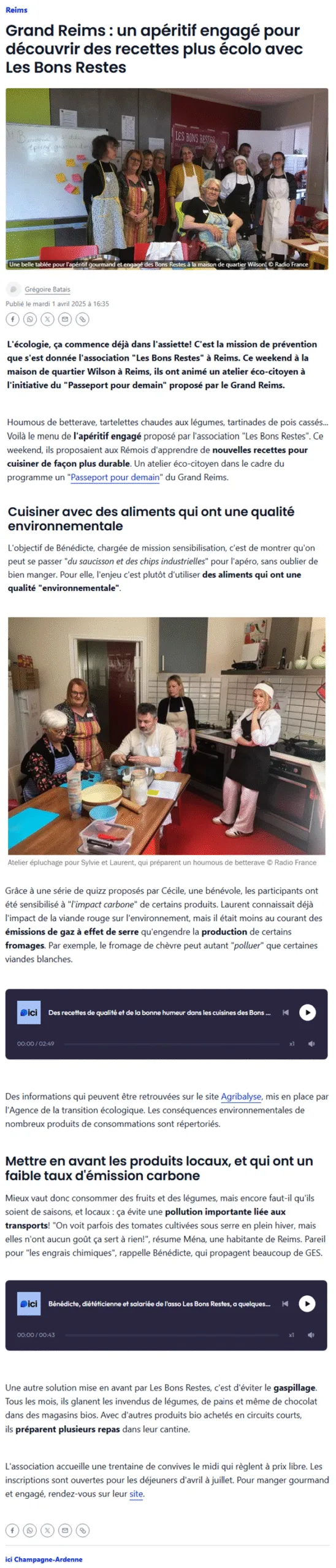 Grand Reims : un apéritif engagé pour découvrir des recettes plus écolo avec Les Bons Restes