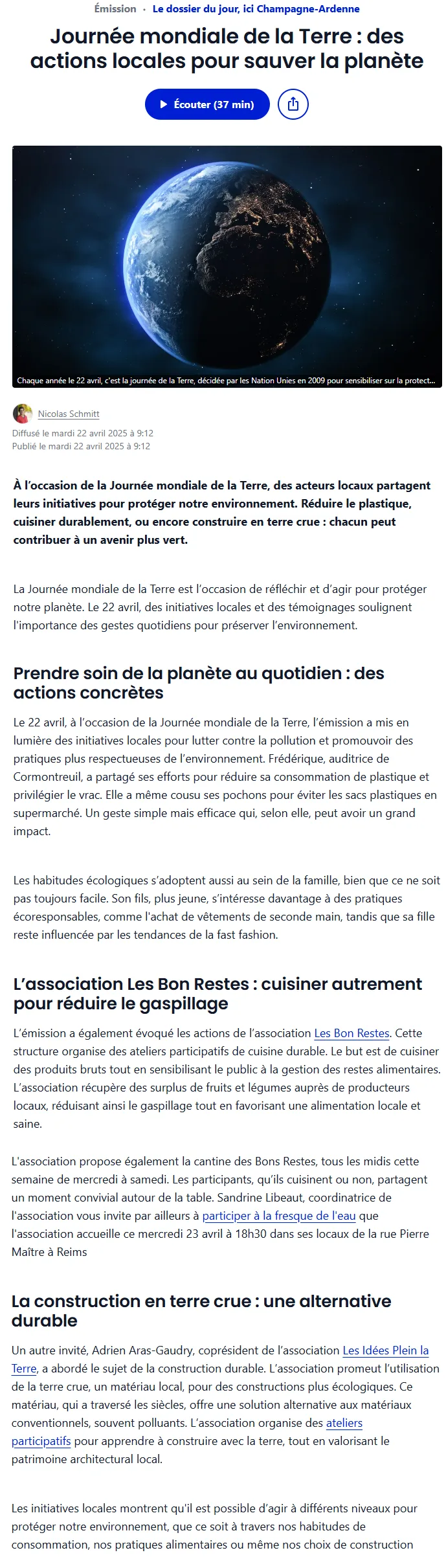 Retrouvez tous les podcasts de nos passages radio sur Ici Champagne-Ardenne (ex. France Bleu Champagne-Ardenne).