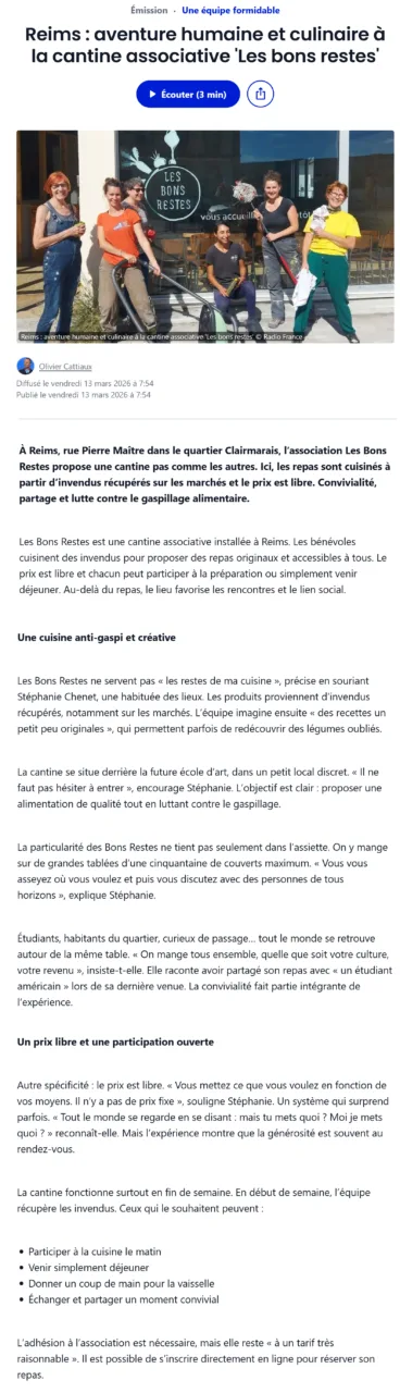 Une équipe formidable : Reims : aventure humaine et culinaire à la cantine associative ‘Les Bons Restes’
